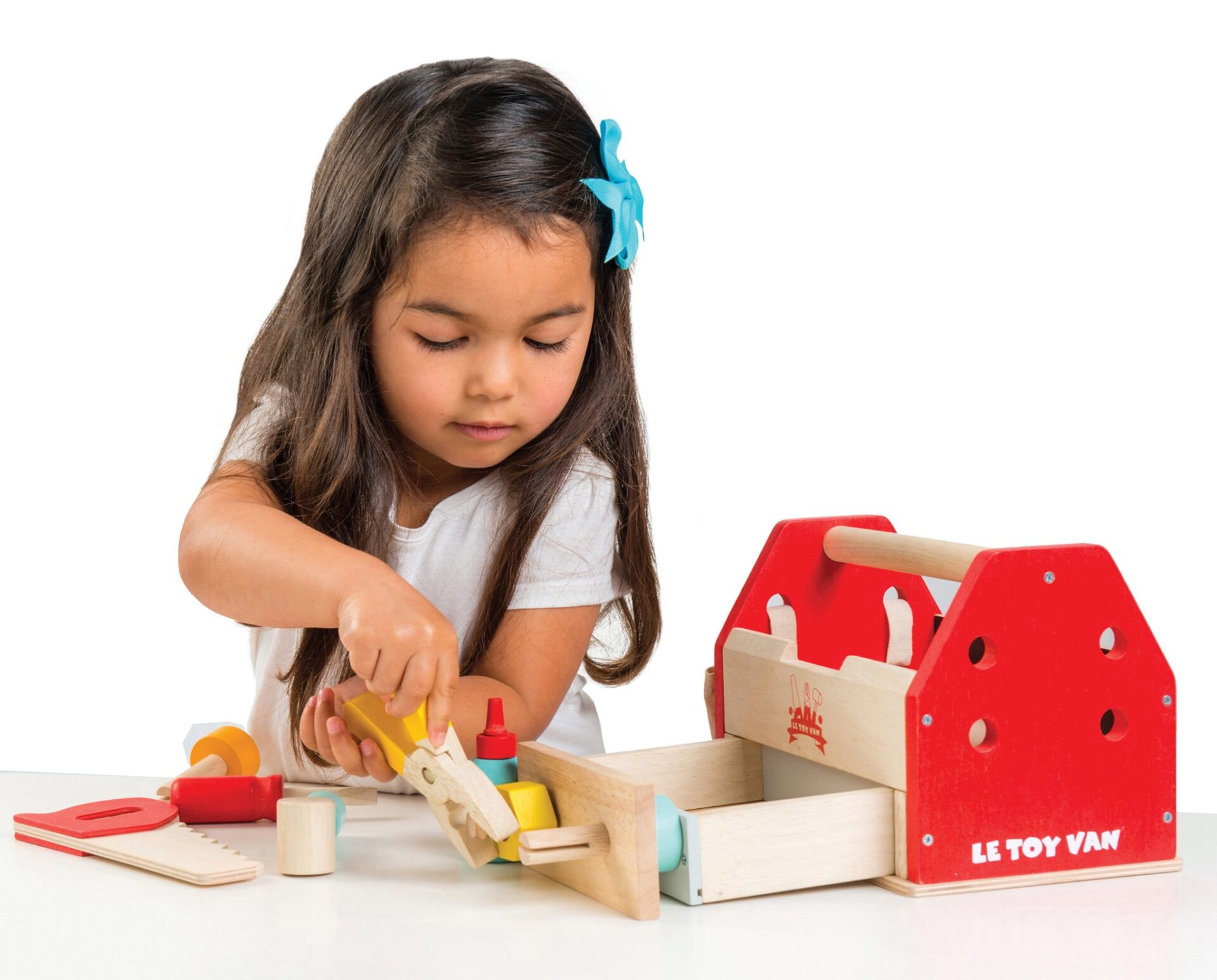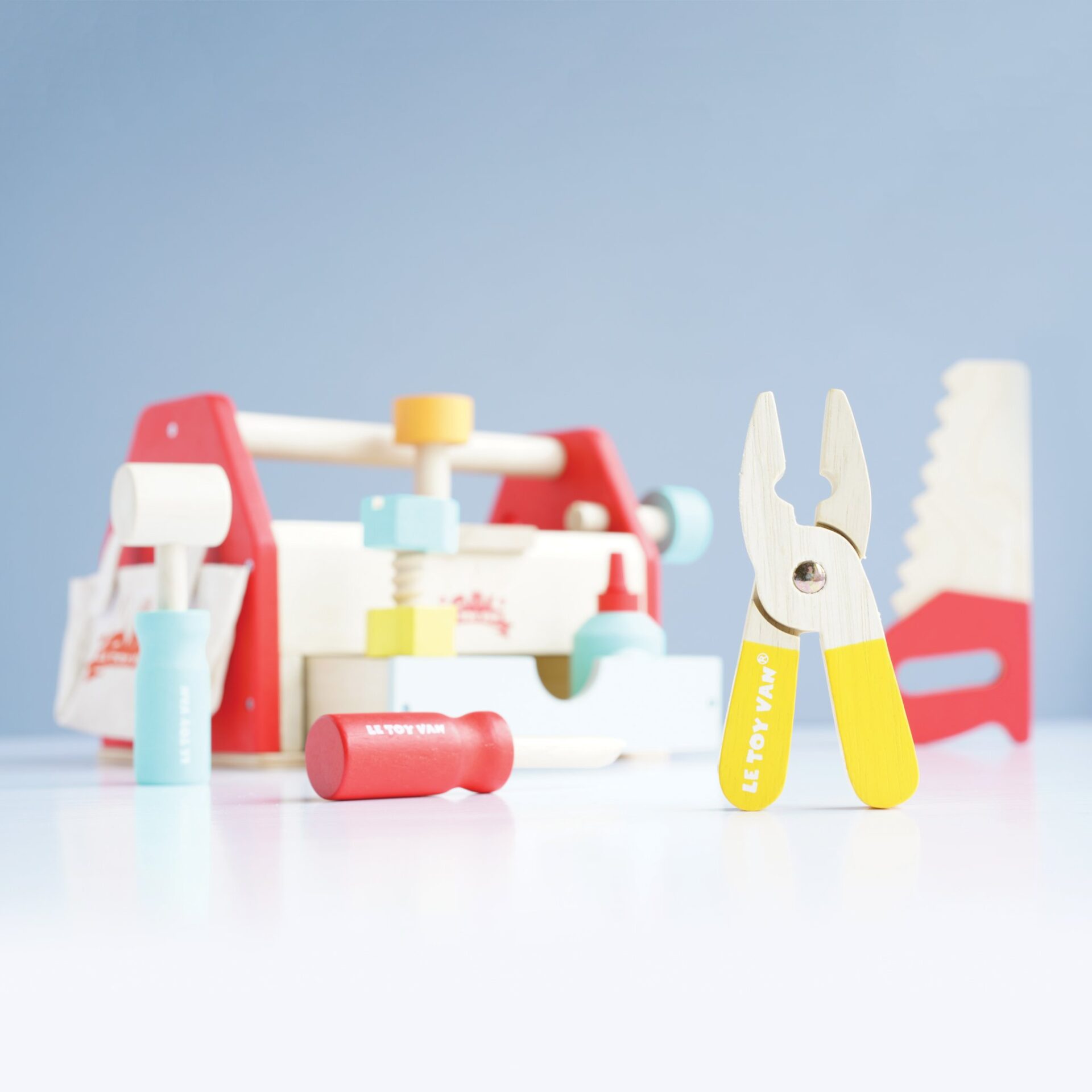 ערכת כלי העבודה צבועה בצבעים ניטרליים מגדרית, המעודדים חלוקת הצעצוע בין אחים וחברים